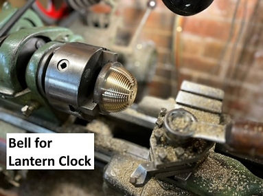 The second mistake was choosing a commercial bronze bell from Merritts USA. I was never happy with the shape as it didn’t fit the size of the clock and was far too different to the typical early examples and Martin Foster persuaded me that it spoiled the whole look of the clock. Then at the April meeting of the Society a visitor, Milton Wood, showed a brass bell that he had made and that gave me the impetus to make my own. This I have done and the effect is much more in line with the type. The bell is brass and is 80mm diameter and 40mm high.